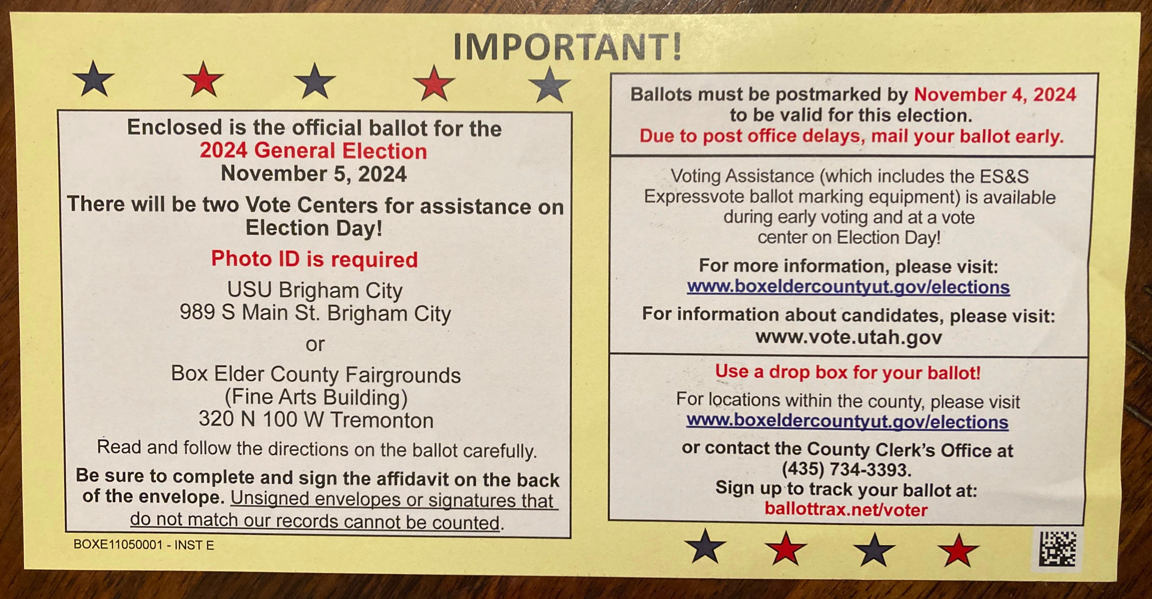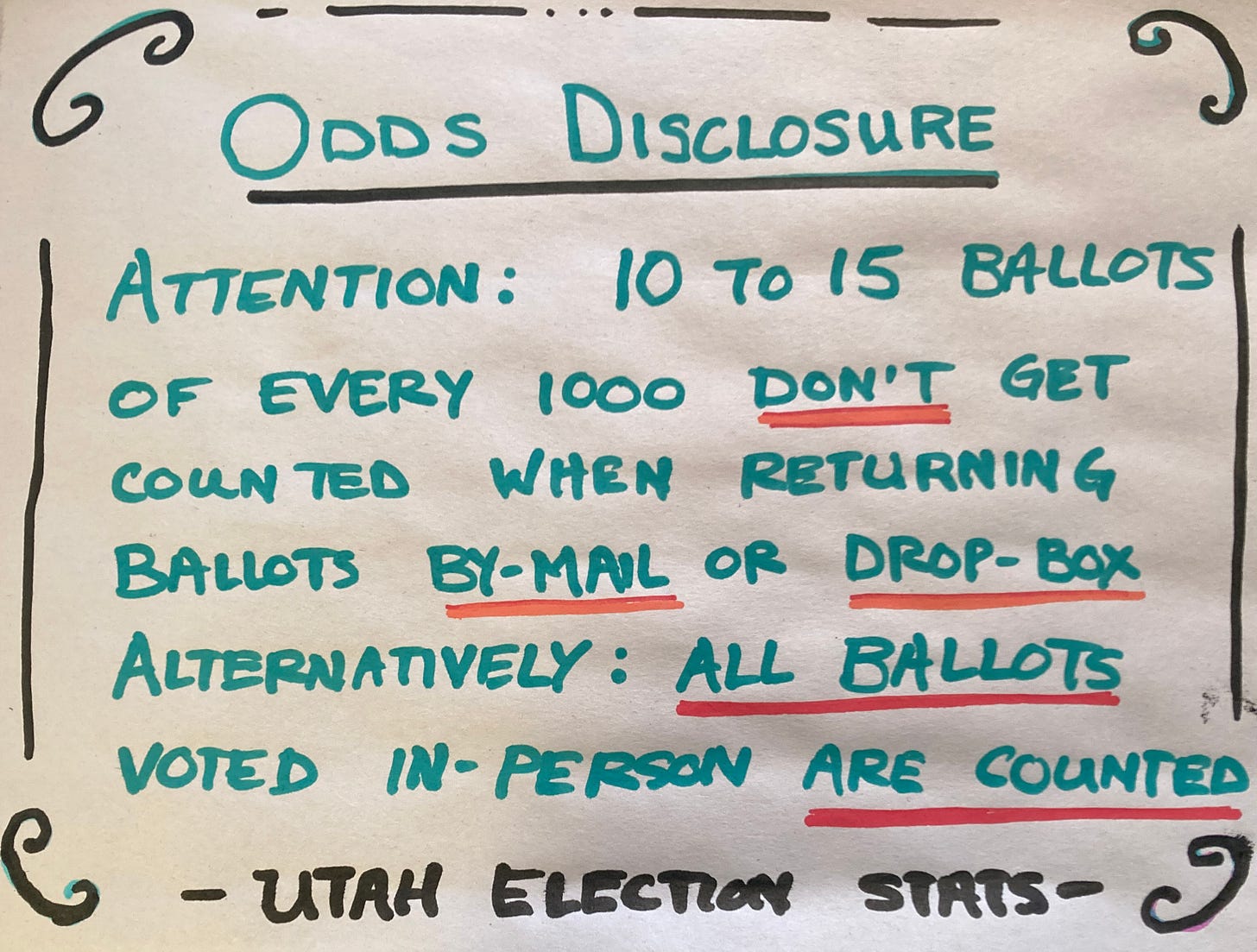 At the end of the eighteenth century one of my progenitors was working at the prison in Sugarhouse (east bench of Salt Lake City). He was very troubled because the prison required him to be present during the executions of prisoners whom he had watched-over and gotten to know. I find similar distress at the thought of your ballot being canceled by the introduction of a falsified-ballot or by the accidental mis-judgement of a well-meaning election official (either to keep a fraudulent ballot or to discard a legitimate ballot).