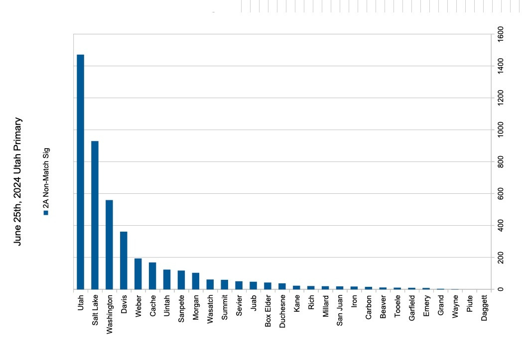 My county, Box Elder, likely would have had more wasted ballots from non-matching signatures had they not had the lowest percentage voter-turnout of any county in the state: