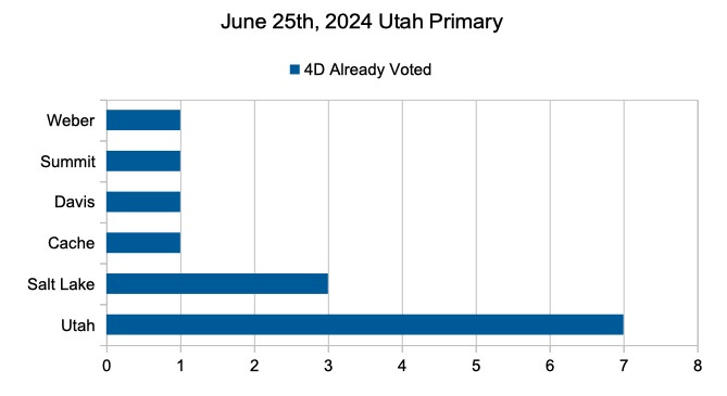One-percent of the 454,030 mailed and drop-box ballots, or 4,526 ballots, were tossed on signature suspicions alone in June. In other words, if we had about 200 signature-checkers in Utah, then each pair of checkers would have discarded about 45 ballots in the June 2024 primary. It would be a common occurrence for them and likely discomforting.